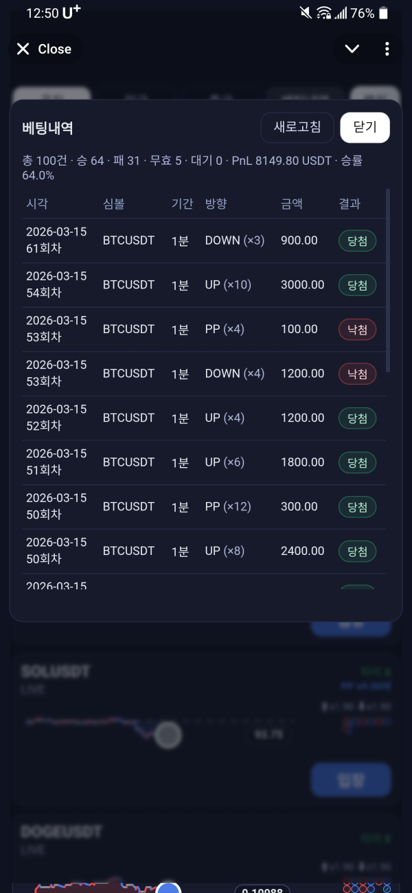 1.95배라는 높은 배당률과 동시에 게임 방법도 차트 결과 업 혹은 다운중 하나만 골라서 배팅하는 방식 입니다.