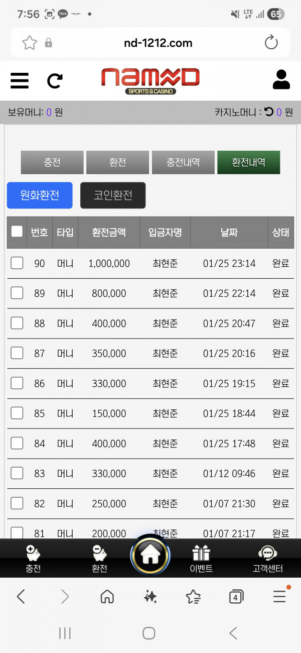 환전 너무너무 잘됩니다 사이트는 역시 네임드!!