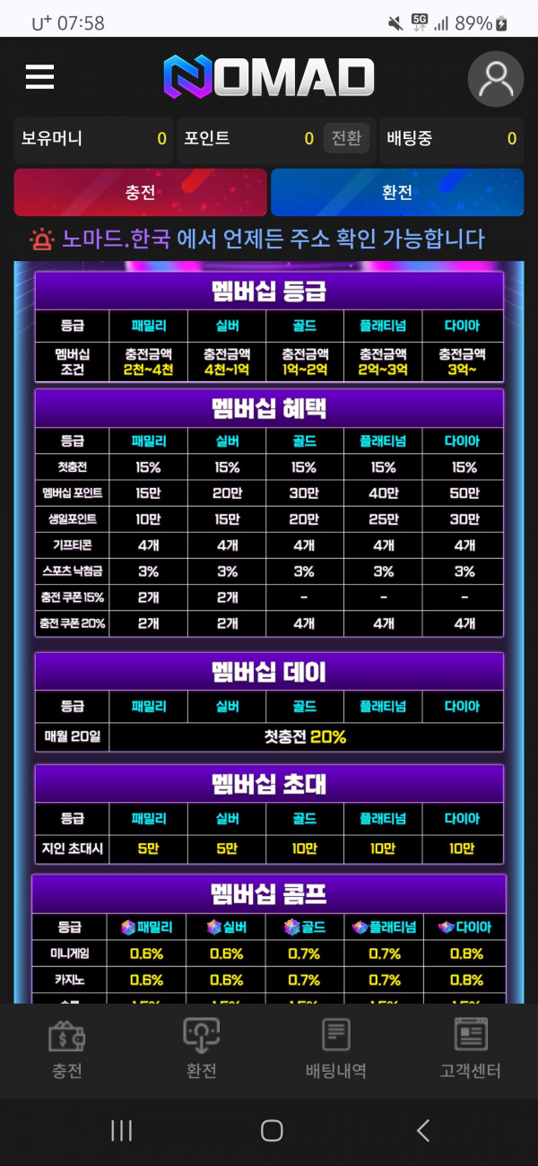 카지노는 한번 환전하면 매충포가 없고 첫충전에만 적용되지만 여기는 환전해도 계속 매충 5퍼가 나옵니다