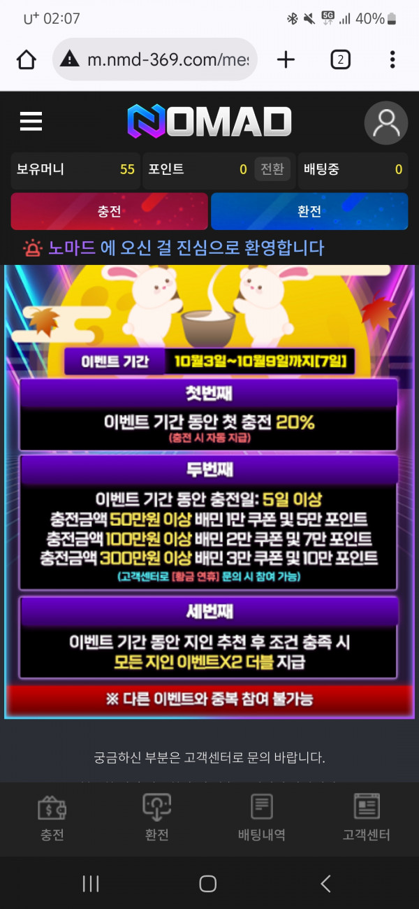 안녕하세요 형냐들 오늘 사이트 하나 추천할게요 노마드라는 사이트인데 충전환전 아주 잘나오고 좋네요