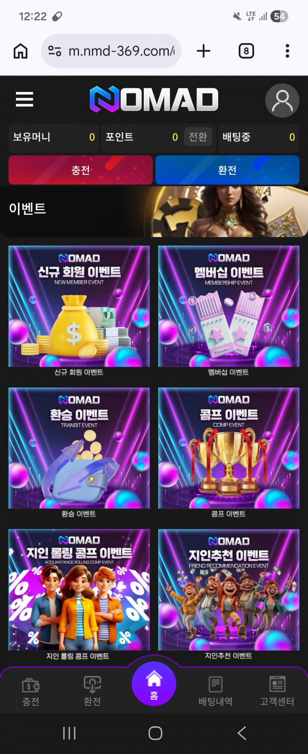 노마드 사이트 요즘 이용하는데 사이트 깔끔하고 좋은거 같아요 이벤도 다양하고 입금도 간편하고 다들 이용해보셔요