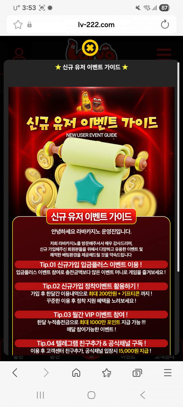 라바카지노 충전환전 홍보글 혜택 후기인증