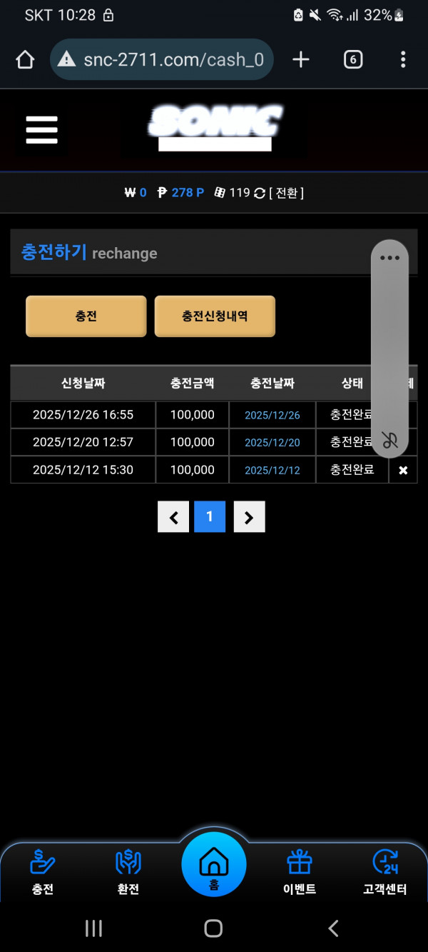 오늘 이용한 소닉입니다. 이번달은 흐름이 너무 안좋네요. 소닉 플앤고만 하는데 소액씩 이용하는거긴 하지만 요즘 좀 별로인거같습니다 저번달처럼 빨리 흐름타서 환전치고싶네오 다들 소닉에서 건승하세요