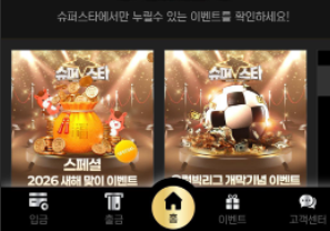 이벤트 그냥 퍼줌 ㅎㄷㄷ 다양한 게임과 스포츠 덕분에 지루할 틈 없이 즐길수 있었고, 충환전도 빠르고 고객센터도 친절해서 매우 만족했습니다. 슈퍼스타 추천드려요!