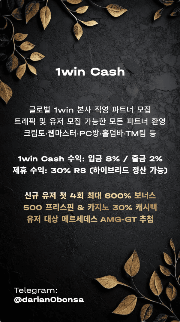 유저 유입 및 1win Cash 앱을 이용한 입출금 대행