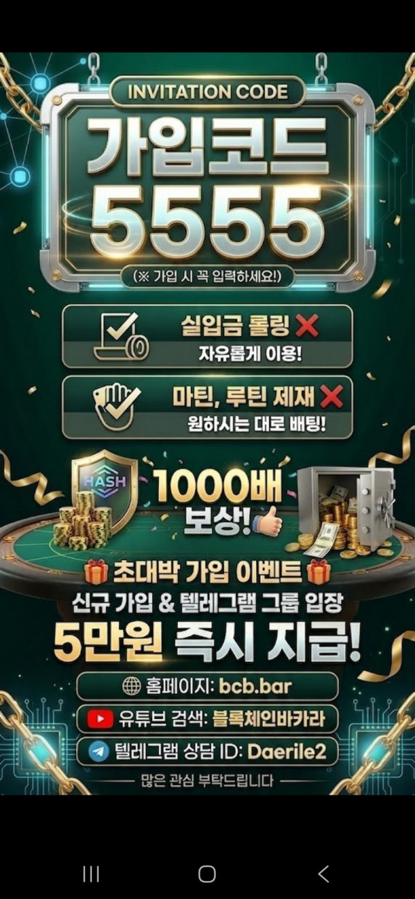 신규 가입하시고 텔레그램 그룹방 입장하시면 5만원 즉시 지급해 드립니다!