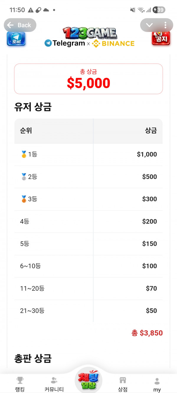 안녕하세요 123차트게임 입니다. 실이용자로써 후기한번 드릴게요 일단 입출금 원화 테더 다되고요 입출금 자동화로 거의2분내로 다 출금완료됩니다. 그리고 게임 진짜단순해서 다들 돈많이벌어가실거에요 1분뒤에 올라갈지내려갈지 선택만하면 끝입니다 다들한번 즐기러와버세여 ㅎㅎ