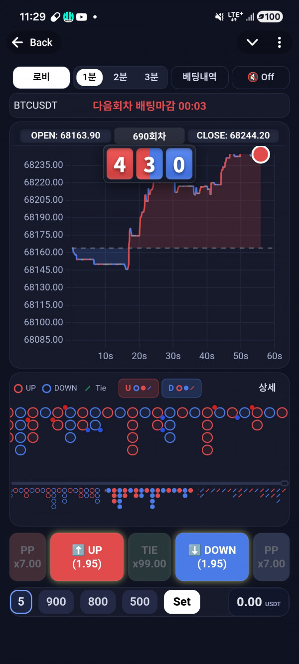 안녕하세요 123차트게임 입니다. 실이용자로써 후기한번 드릴게요 일단 입출금 원화 테더 다되고요 입출금 자동화로 거의2분내로 다 출금완료됩니다. 그리고 게임 진짜단순해서 다들 돈많이벌어가실거에요 1분뒤에 올라갈지내려갈지 선택만하면 끝입니다 다들한번 즐기러와버세여 ㅎㅎ