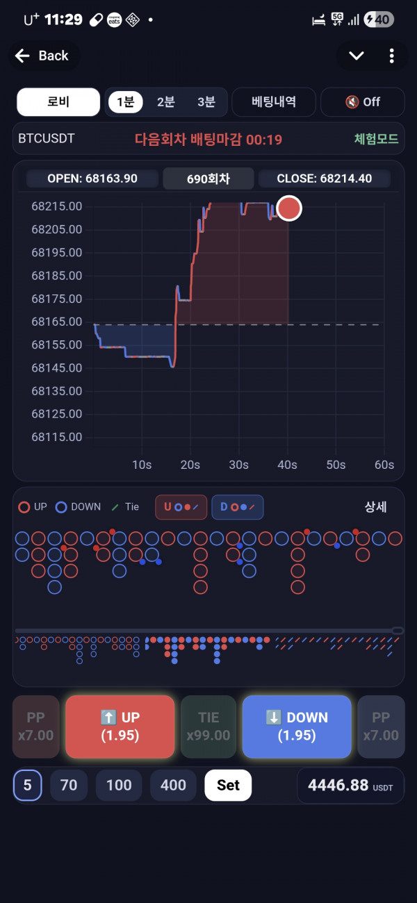 복잡한 분석 필요 없이 UP / DOWN / TIE 단순 선택으로 승부 끝!